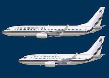1996年7月,為滿足市場需求,制造較大、更完善、航程超過6000海里的公務機。波音公司與GE公司建立合資企業(yè)波音公務噴氣飛機公司,開始波音公務機的研制開發(fā)工作,1997年10月正式啟動BBJ計劃。 ![]() BBJ(Boeing Business Jet) BBJ: 基本型,以波音737-700為原型機發(fā)展而來,在737-700的基礎(chǔ)上對機翼和起落架部分進行加強,加裝融合型翼梢小翼,航程加大,可達11480公里,并于1998年9月4日首飛。已獲得180分鐘ETOPS(雙發(fā)延程飛行)批準,可以飛更多直飛航線。 ![]() BBJ BBJ2: 以波音下一代737-800飛機為原型,較之以737-700貨機為原型的BBJ,長度增加5.85米,空間加大25%。1999年10月開始啟動該計劃,2001年3月已開始交付使用。