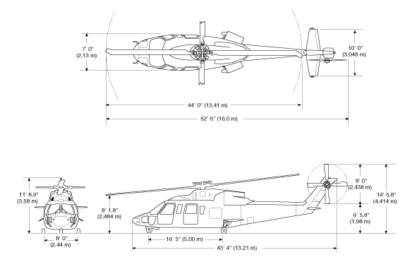 西科斯基S-76C++直升機(jī)尺寸
