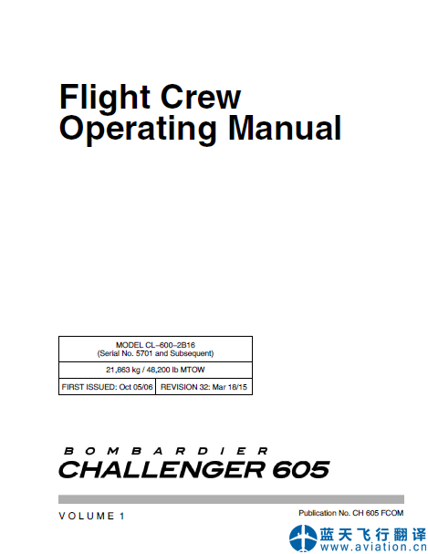 北京藍天飛行翻譯公司完成大型公務(wù)機公司的第32版/2015年3月18日版本龐巴迪挑戰(zhàn)者605全套飛行手冊翻譯任務(wù):第32版龐巴迪挑戰(zhàn)者605飛機飛行手冊、機組操作手冊、快速檢查單 Revision 32 Mar 18/15 Bombardier Challenger 605 Airplane Flight Manual, Flight Crew Operating Manual, Quick Reference Handbook Translation ![]() 龐巴迪挑戰(zhàn)者605飛機飛行手冊 Bombardier Challenger 605 Airplane Flight Manual ![]() 龐巴迪挑戰(zhàn)者605機組操作手冊第一冊 Bombardier Challenger 605 Flight Crew Operating Manual ![]() 龐巴迪挑戰(zhàn)者605機組操作手冊 Bombardier Challenger 605 Flight Crew Operating Manual ![]() 龐巴迪挑戰(zhàn)者605快速檢查單第一冊 Bombardier Challenger 605 Quick Reference Handbook ![]() 龐巴迪挑戰(zhàn)者605快速檢查單第二冊 Bombardier Challenger 605 Quick Reference Handbook |