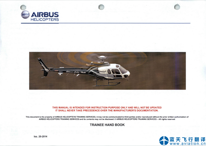 藍(lán)天飛行翻譯公司承接小松鼠AS350培訓(xùn)手冊(cè)翻譯任務(wù) AS350 Trainee Manual Translation
