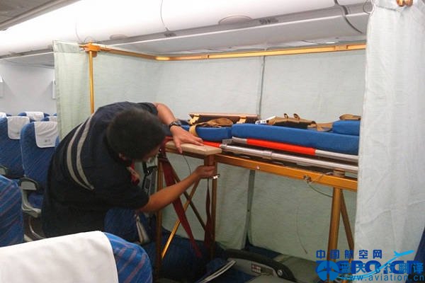 飛機(jī)進(jìn)入航后維護(hù)后,車間便立即派人前往安裝,為節(jié)省成本,切實(shí)落實(shí)南航降本增效措施,機(jī)務(wù)人員關(guān)閉了客艙空調(diào),克服了40余度的客艙悶熱環(huán)境,開展了旅客擔(dān)架安裝。所有工作進(jìn)行地平穩(wěn)有序,但由于員工工作在宛如桑拿房一樣的客艙內(nèi),對(duì)大家體力、耐力帶來了極大的挑戰(zhàn),員工們汗流浹背,然而就在擔(dān)架終于完整搭起的那一刻,大家臉上露出了對(duì)自己成果滿意的微笑,同時(shí)還不忘再次檢查一下各部位是否牢固,墊子、隔簾等是否會(huì)影響擔(dān)架旅客的舒適性, 17日,航班準(zhǔn)時(shí)起飛,順利運(yùn)送擔(dān)架旅客到達(dá)臺(tái)灣,參加過此次工作的機(jī)務(wù)人員似乎都已忘記了那酷熱的客艙,在他們談到這次保障和構(gòu)筑海峽兩岸生命通道的事跡時(shí),言語(yǔ)中對(duì)更多是對(duì)生命的尊敬、對(duì)同胞的深厚感情和對(duì)于機(jī)務(wù)維修的職業(yè)責(zé)任感和成就感。