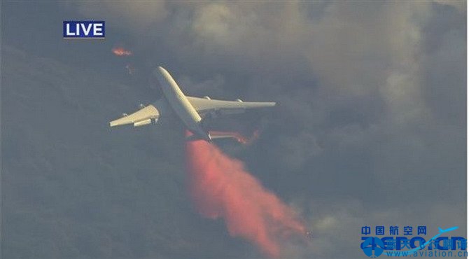 據(jù)San Bernardino Sun報(bào)道,加州消防部門不得不請來了世界上最大的“移動滅火器”,波音747 Super Tanker。
