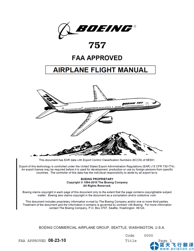 北京藍(lán)天飛行翻譯公司完成航空公司波音757飛機(jī)飛行手冊(cè)翻譯任務(wù) Boeing 757 Airplane Flight Manual Translation