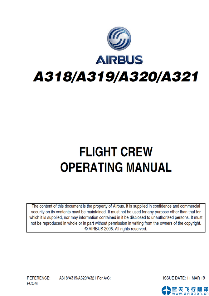 北京藍天飛行翻譯公司承接大型公務(wù)機公司的2019年3月11日版本空客公務(wù)機ACJ319飛行機組操作手冊(FCOM FLIGHT CREW OPERATING MANUAL)、ACJ319快速檢查單(QRH QUICK REFERENCE HANDBOOK)和ACJ319飛機飛行手冊(AIRPLANE FLIGHT MANUAL)翻譯任務(wù) 11 MAR 19 ACJ319 FLIGHT CREW OPERATING MANUAL, QRH QUICK REFERENCE HANDBOOK and AIRPLANE FLIGHT MANUAL Translation ![]() ACJ319 FLIGHT CREW OPERATING MANUAL ACJ319 飛行機組操作手冊 ![]() ACJ319 QUICK REFERENCE HANDBOOK ACJ319 快速檢查單 |