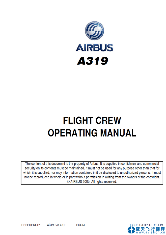 北京藍(lán)天飛行翻譯公司完成大型公務(wù)機(jī)公司的2019年12月11日版本空客公務(wù)機(jī)ACJ319飛行機(jī)組操作手冊(FCOM FLIGHT CREW OPERATING MANUAL)、ACJ319快速檢查單(QRH QUICK REFERENCE HANDBOOK)和ACJ319飛機(jī)飛行手冊(AIRPLANE FLIGHT MANUAL)翻譯任務(wù) 11 DEC 19 ACJ319 FLIGHT CREW OPERATING MANUAL, QRH QUICK REFERENCE HANDBOOK and AIRPLANE FLIGHT MANUAL Translation