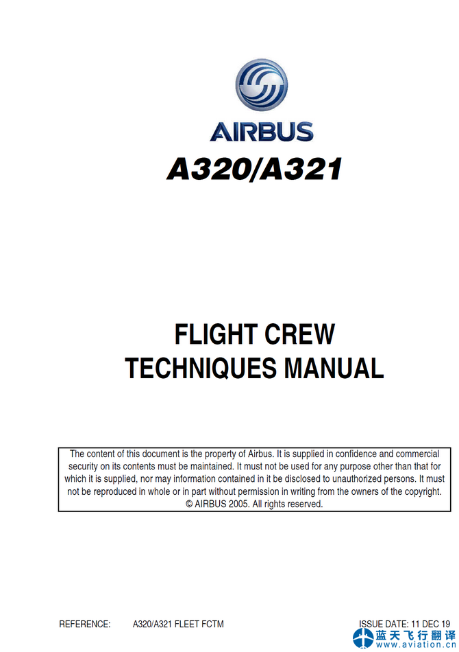 本次翻譯的A320/A321飛行手冊包含97架飛機(jī)、320-214、320-251N和321-253NX三個機(jī)型,手冊包含有A320/A321快速檢查單(QRH QUICK REFERENCE HANDBOOK),版本為2019年12月11日和A320/A321飛行機(jī)組技術(shù)手冊(FCTM FLIGHT CREW TECHNIQUES MANUAL),版本為2019年12月11日。