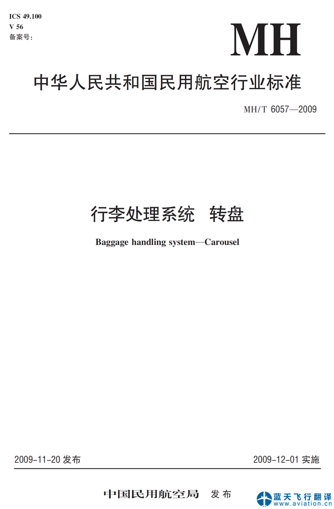 北京藍(lán)天飛行翻譯公司承接中國(guó)民用航空局發(fā)布的中華人民共和國(guó)民用航空行業(yè)標(biāo)準(zhǔn)行李處理系統(tǒng)轉(zhuǎn)盤(pán)翻譯任務(wù) Baggage handling system—Carousel, Civil Aviation Industrial Standard Translation![]() 中華人民共和國(guó)民用航空行業(yè)標(biāo)準(zhǔn)行李處理系統(tǒng)轉(zhuǎn)盤(pán) 中華人民共和國(guó)民用航空行業(yè)標(biāo)準(zhǔn)行李處理系統(tǒng)轉(zhuǎn)盤(pán)(Baggage handling system—Carousel)的主要內(nèi)容包含有: