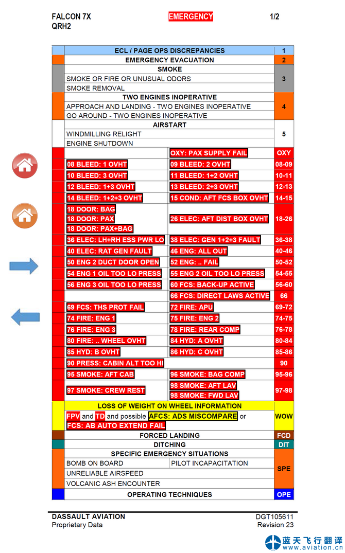 北京藍(lán)天飛行翻譯公司完成大型公務(wù)機(jī)公司的達(dá)索獵鷹7X快速檢查單翻譯任務(wù) DASSAULT AVIATION Falcon 7X QUICK REFERENCE HANDBOOK Translation