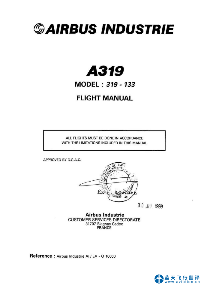 北京藍(lán)天飛行翻譯有限公司完成大型公務(wù)機(jī)公司的2020年12月14日空客ACJ319和ACJ320快速檢查單(QRH QUICK REFERENCE HANDBOOK)和飛機(jī)飛行手冊(cè)(AIRPLANE FLIGHT MANUAL)翻譯任務(wù) 14 DEC 20 ACJ319 and ACJ320 QRH QUICK REFERENCE HANDBOOK and AIRPLANE FLIGHT MANUAL Translation