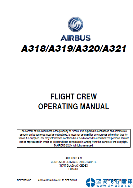 北京藍天飛行翻譯公司完成大型航空公司的16架空客A320機組操作手冊及快速檢查單翻譯任務 A320 FLIGHT CREW OPERATING MANUAL and QUICK REFERENCE HANDBOOK Translation 本次16架A320飛機機組操作手冊及快速檢查單包含有A319、A320和A321構型,版本為2015年1月6日版。 ![]() A320機組操作手冊 A320 FLIGHT CREW OPERATING MANUAL ![]() A320快速檢查單 A320 QUICK REFERENCE HANDBOOK |