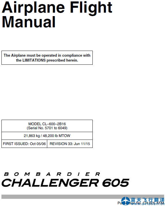 北京藍(lán)天飛行翻譯公司完成公務(wù)機(jī)公司的第33版龐巴迪挑戰(zhàn)者605全套飛行手冊翻譯任務(wù) REVISION 33: Jun 11/15 Bombardier Challenger 605 Flight Manual Translation 第33版龐巴迪挑戰(zhàn)者605飛機(jī)飛行手冊 Bombardier Challenger 605 Airplane Flight Manual 主要更新有 Abnormal Procedures: Introduces the following changes to the Airplane Flight Manual: Addition of instructions during AFCS failures. ![]() 第33版龐巴迪挑戰(zhàn)者605機(jī)組操作手冊 Bombardier Challenger 605 Flight Crew Operating Manual 主要更新有: Revision to Volume 1 introducing changes to reflect Airplane Flight Manual revision 33: Abnormal Procedures. ![]() 第33版龐巴迪挑戰(zhàn)者605快速檢查單 Bombardier Challenger 605 Quick Reference Handbook 主要更新有: Introduces changes to the QRH to reflect AFM revision 33, Jun 11/15. |